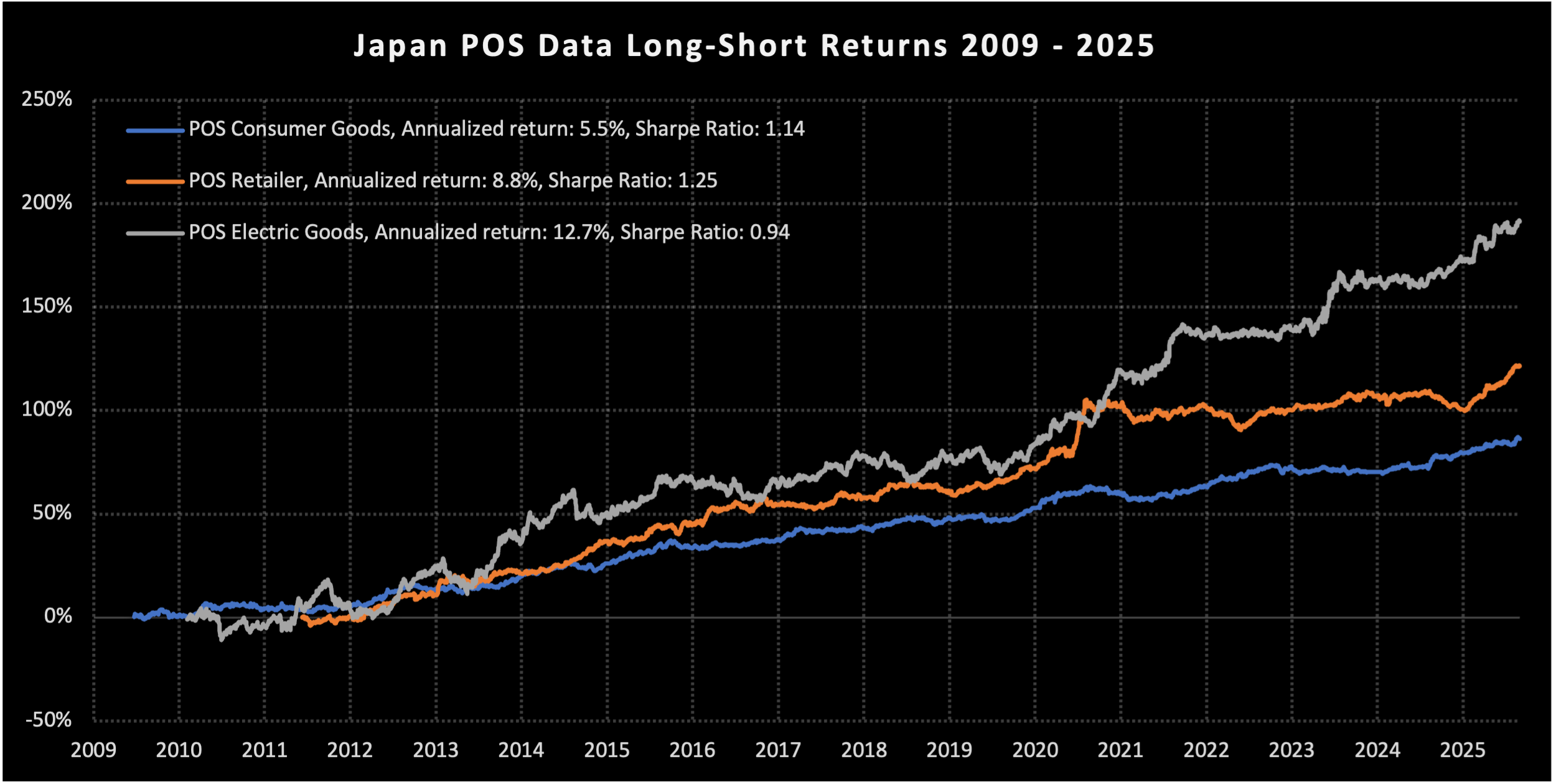 The datasets are for consumer goods companies and retailers, and they can predict future revenue growth and revenue surprises of Japanese equities. Furthermore, a simple signal based on these datasets can also predict stock returns.