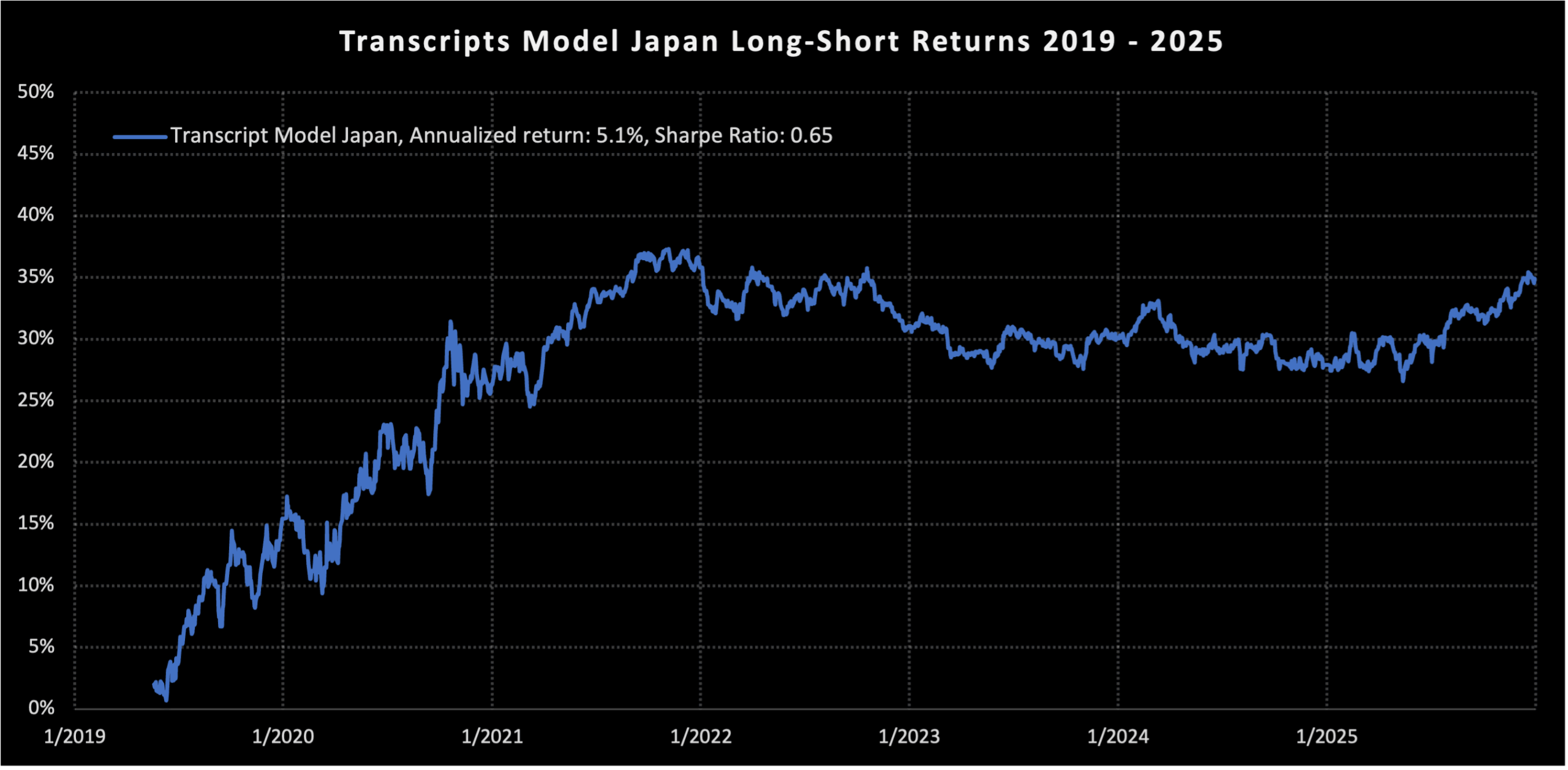 The signal is created through our proprietary sentiment classifier, which is based on Bidirectional Encoder Representations from Transformers (BERT), pre-trained with Japanese financial corpora, i.e., FinBERT Japanese.